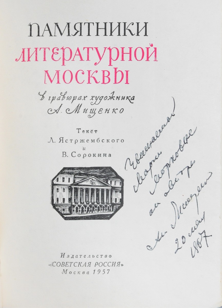 В немой издательской обложке и трехцветной иллюстрированной издательской суперобложке. Экземпляр с дарственной надписью художника Алексея Ивановича Мищенко: «Уважаемой / Марии / Марковне / от автора / А. Мищенко / 20 мая / 1967». Коллекционная сохранность.