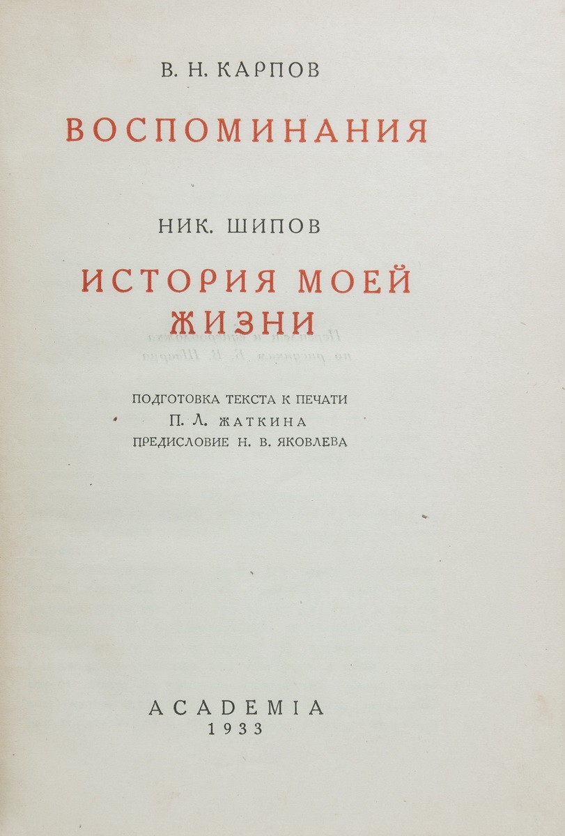 Воспоминания Н. Шипова и В. Карпова — мемуары о русской жизни эпохи Николая I.