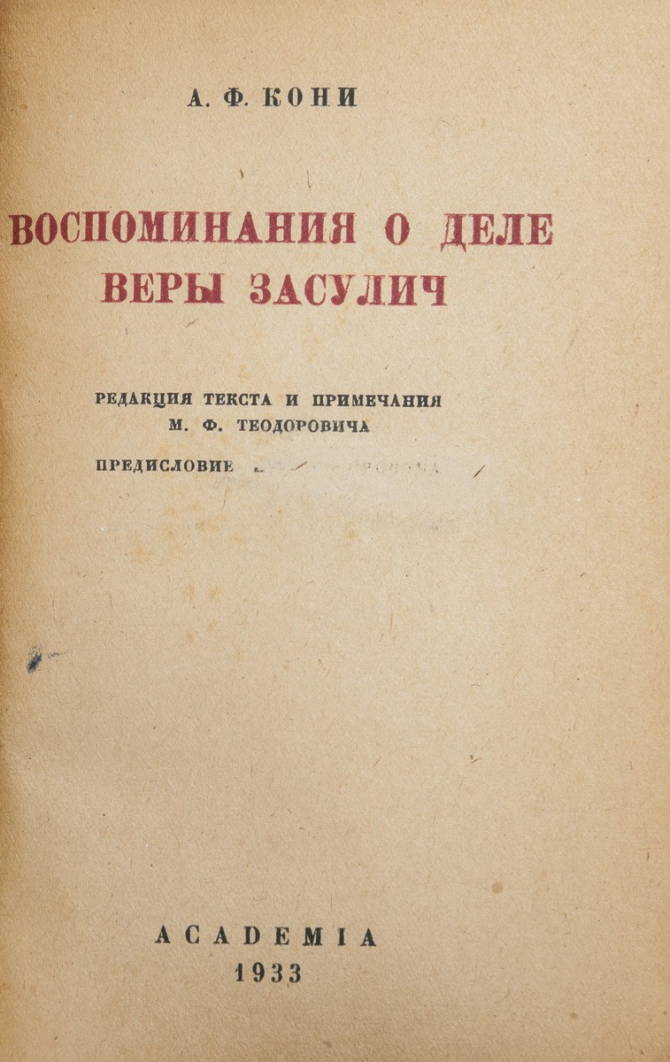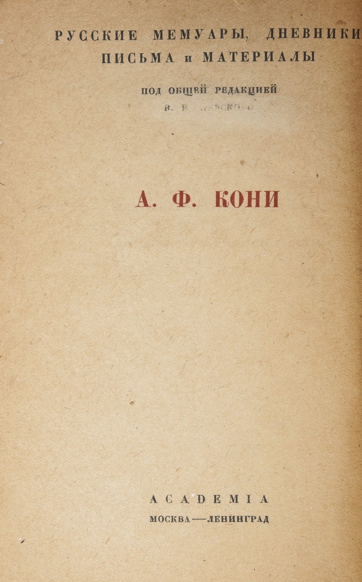 Портрет А.Ф. Кони на фронтисписе — гравюра на дереве П.Я. Павлинова. В издательском коленкоровом переплете и художественной суперобложке по рисункам Н.П. Дмитревского.
