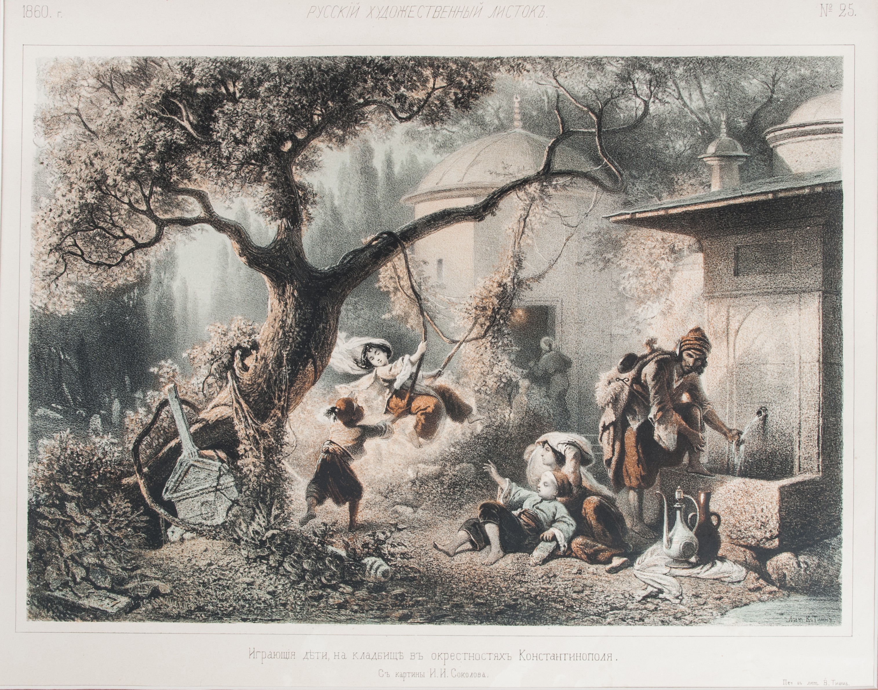 Размер оттиска в свету: 33,5х42,3; с паспарту: 46,7х54 см. Тоновая литография.