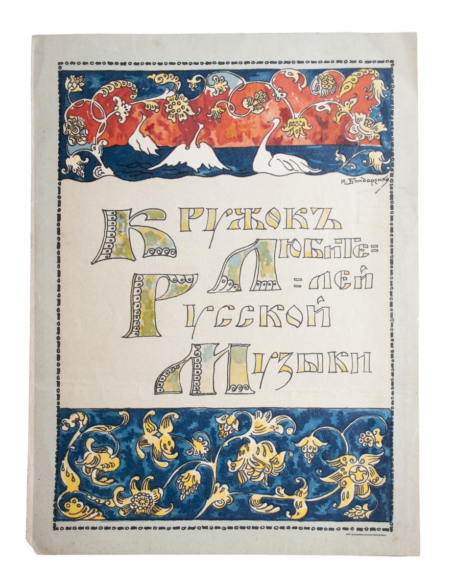 Один, сложенный пополам лист с художественно оформленной первой страницей работы художника И.Е. Бондаренко.