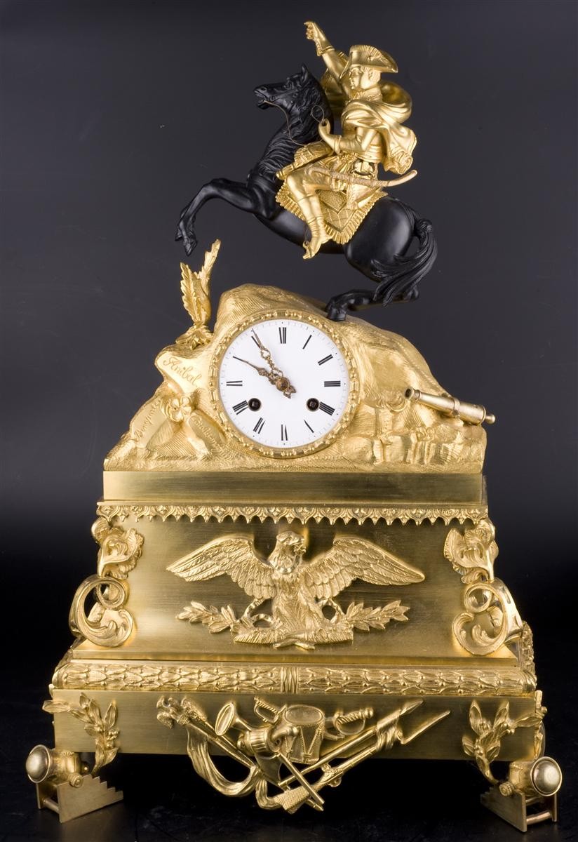 Каминные часы с патиной двух оттенков «Наполеон на перевале Сен-Бернар»